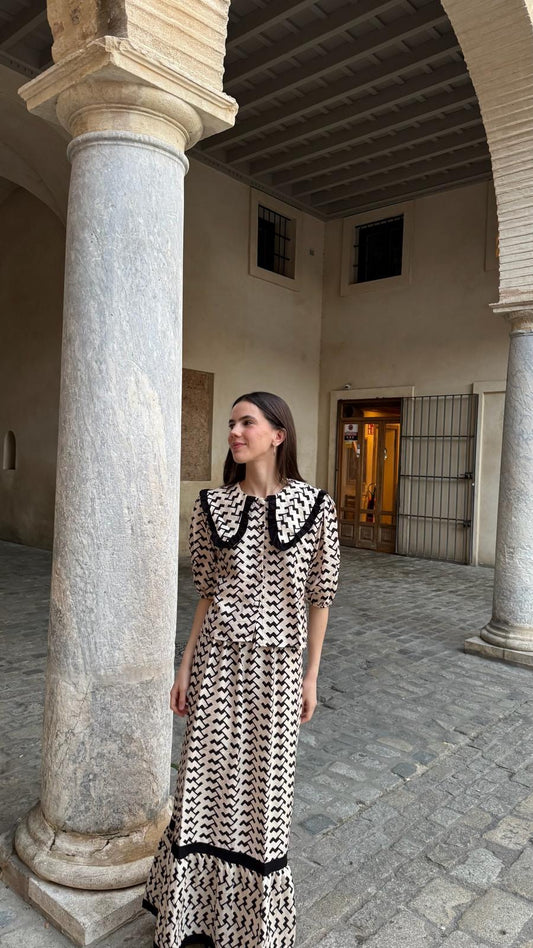 AgotadoVestido Lidia blanco y negro