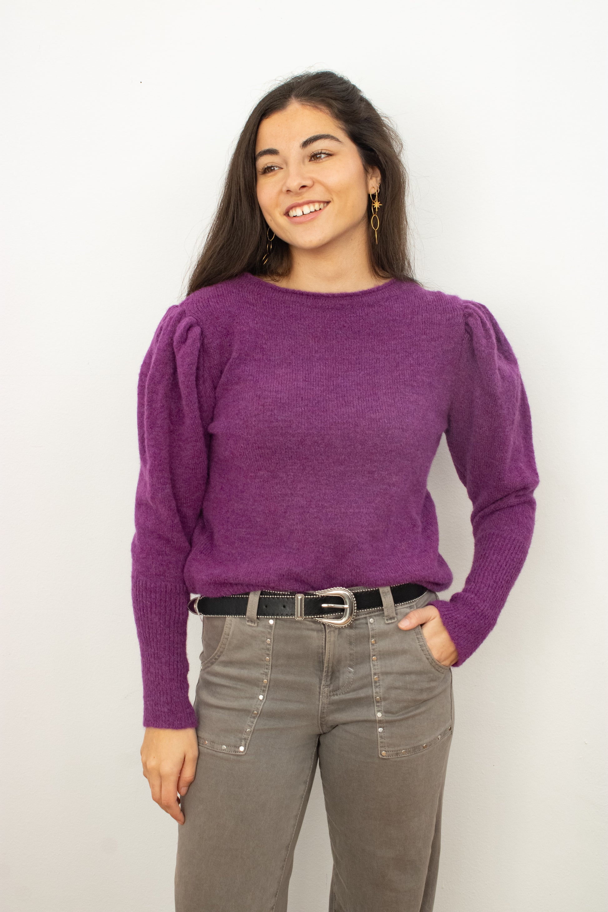 Jersey púrpurada manga abullonada