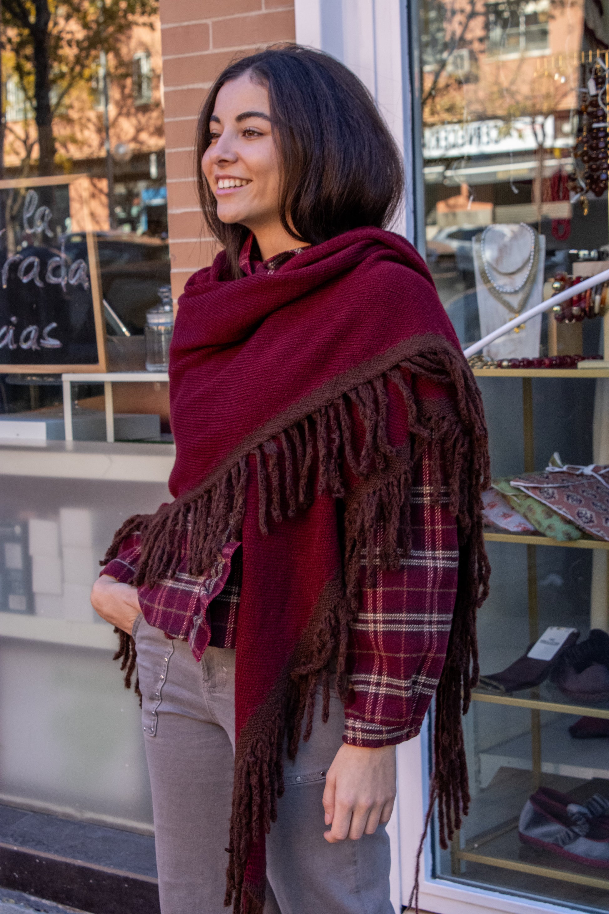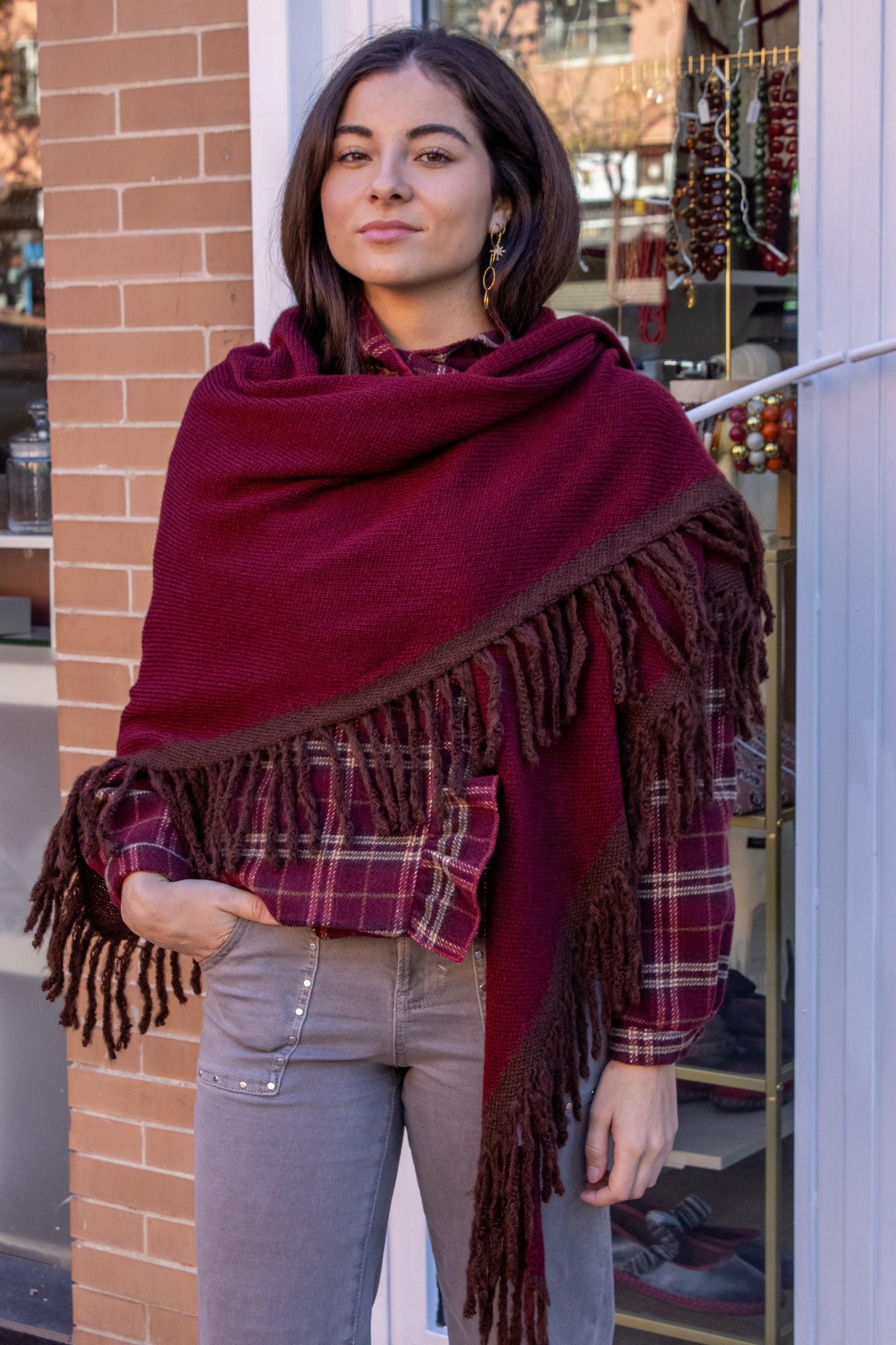 Poncho burdeos y marrón
